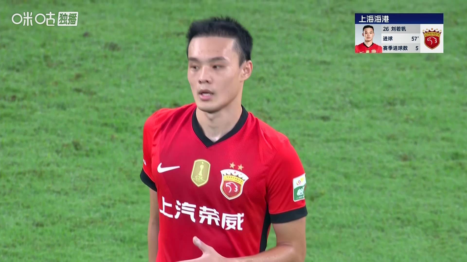 上半场开场仅4分钟,刘若钒禁区抢点被对手从身后踢倒,上港收获点球,但加布里埃尔主罚却踢飞。直到第29分钟上港才打破场上僵局,刘若钒大禁区前沿直塞禁区,莱昂纳多得球后过掉门将打门得手,帮助球队1-0领先。
