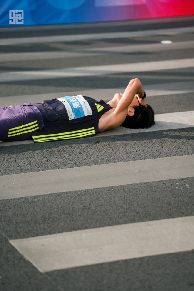 冲过终点线的那一刻,所有的压力、疲惫、隐忍尽数释放。他仰面躺倒在赛道上大口喘气,PB即是对冬训成果的最好检验,也是用全力奔跑兑现的承诺,更是印证了这个冠军的十足含金量。